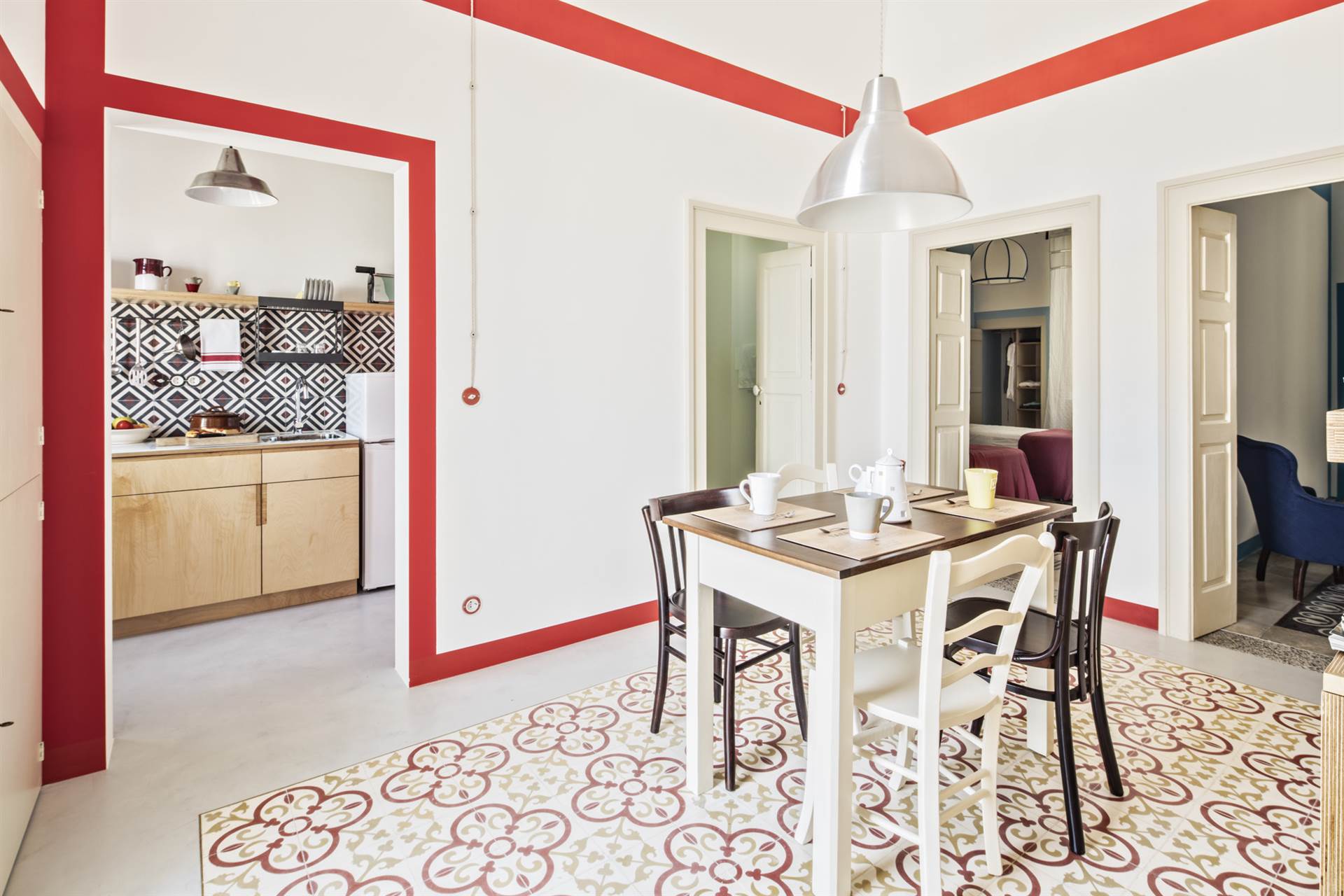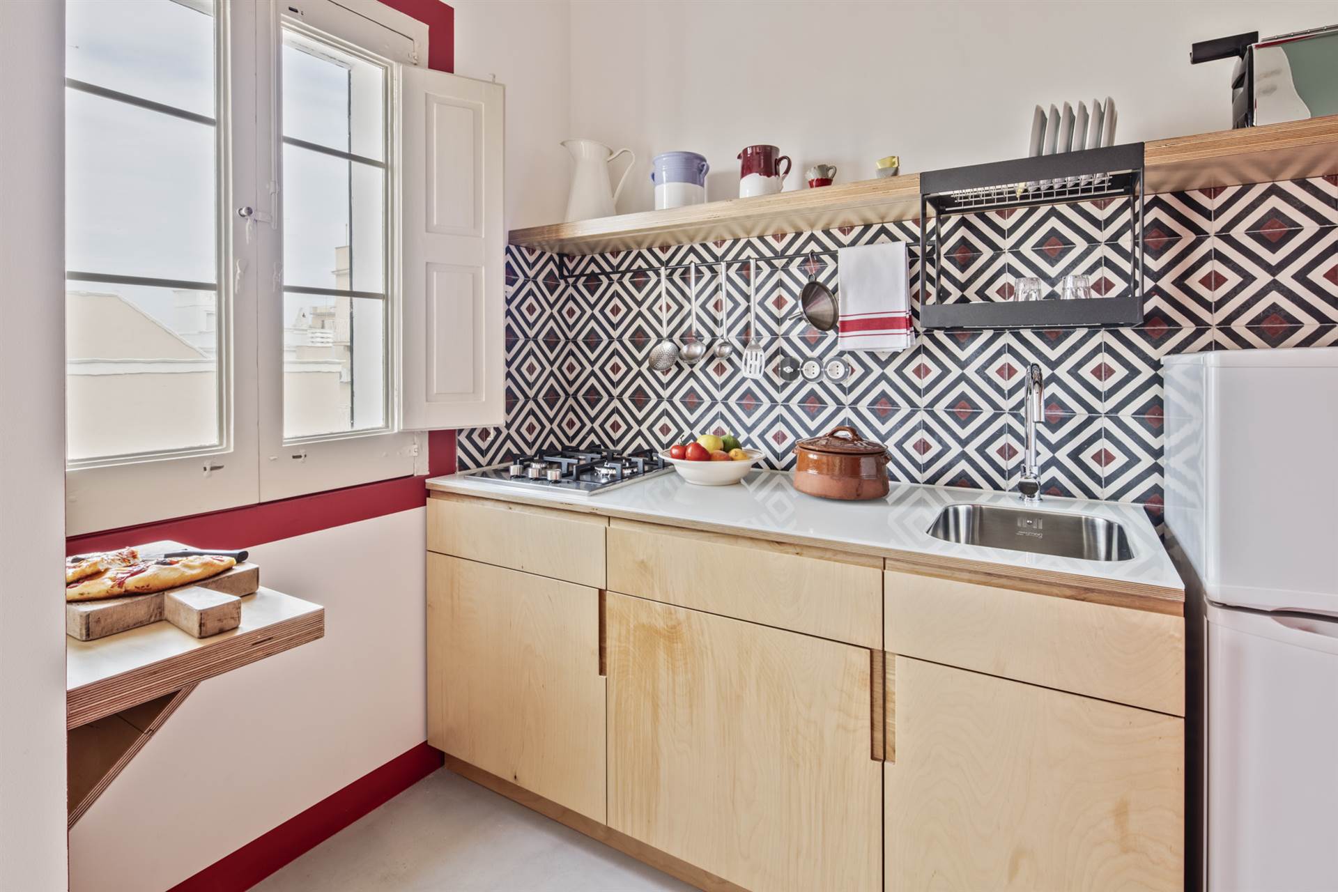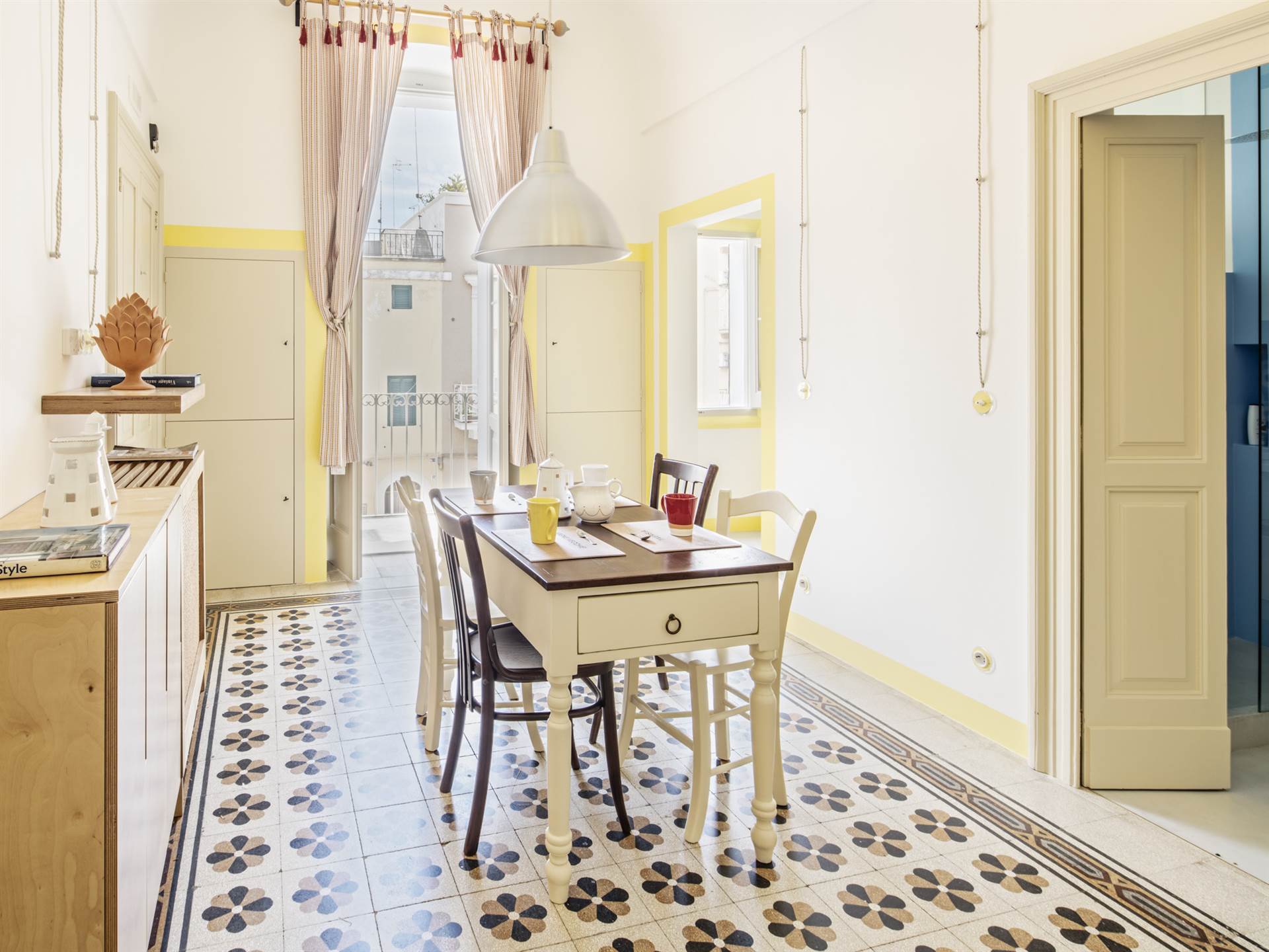 At the top, a spacious private rooftop terrace features an outdoor kitchen and bathroom, creating an idyllic setting to enjoy the Mediterranean climate in complete privacy. From here, take in the charming views of Monopoli’s historic center and Murat district.