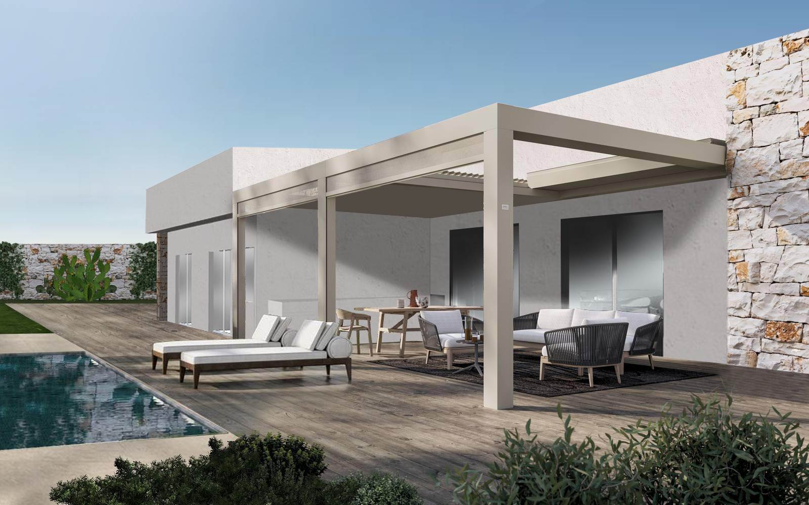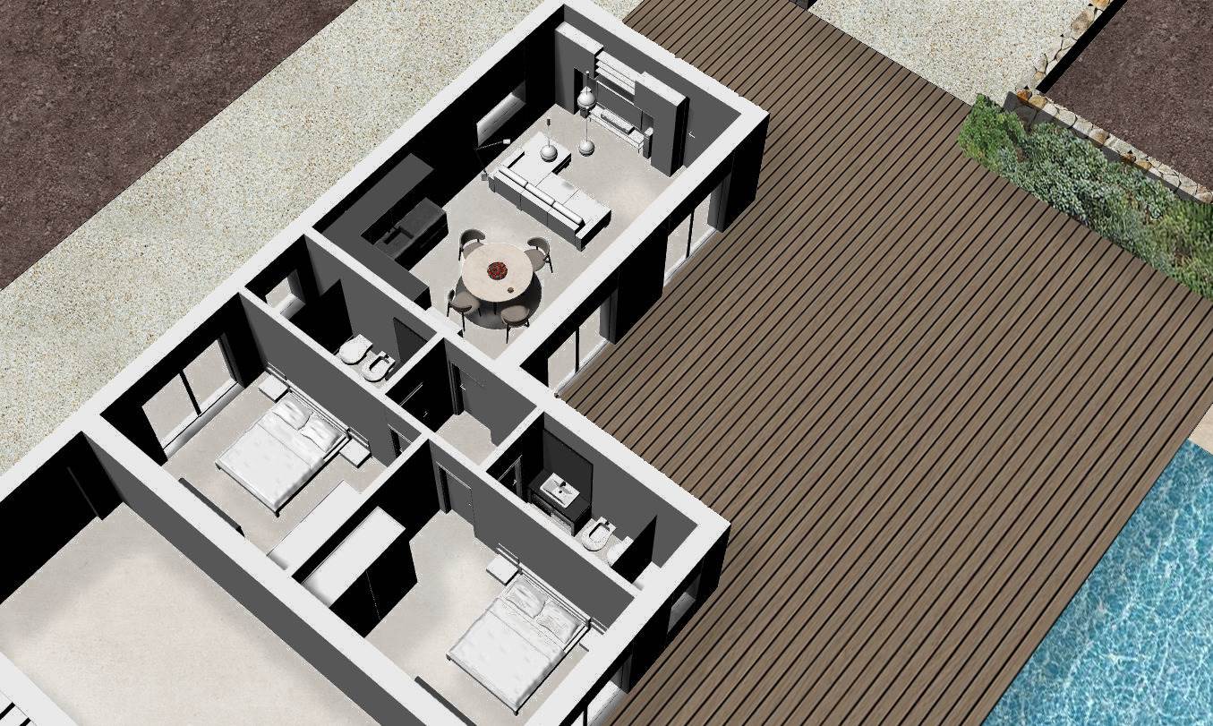 It is possible to build about 90 sq m of housing, about 30 sq m of storage and a 40 sq m swimming pool with a height of 1.50 m.